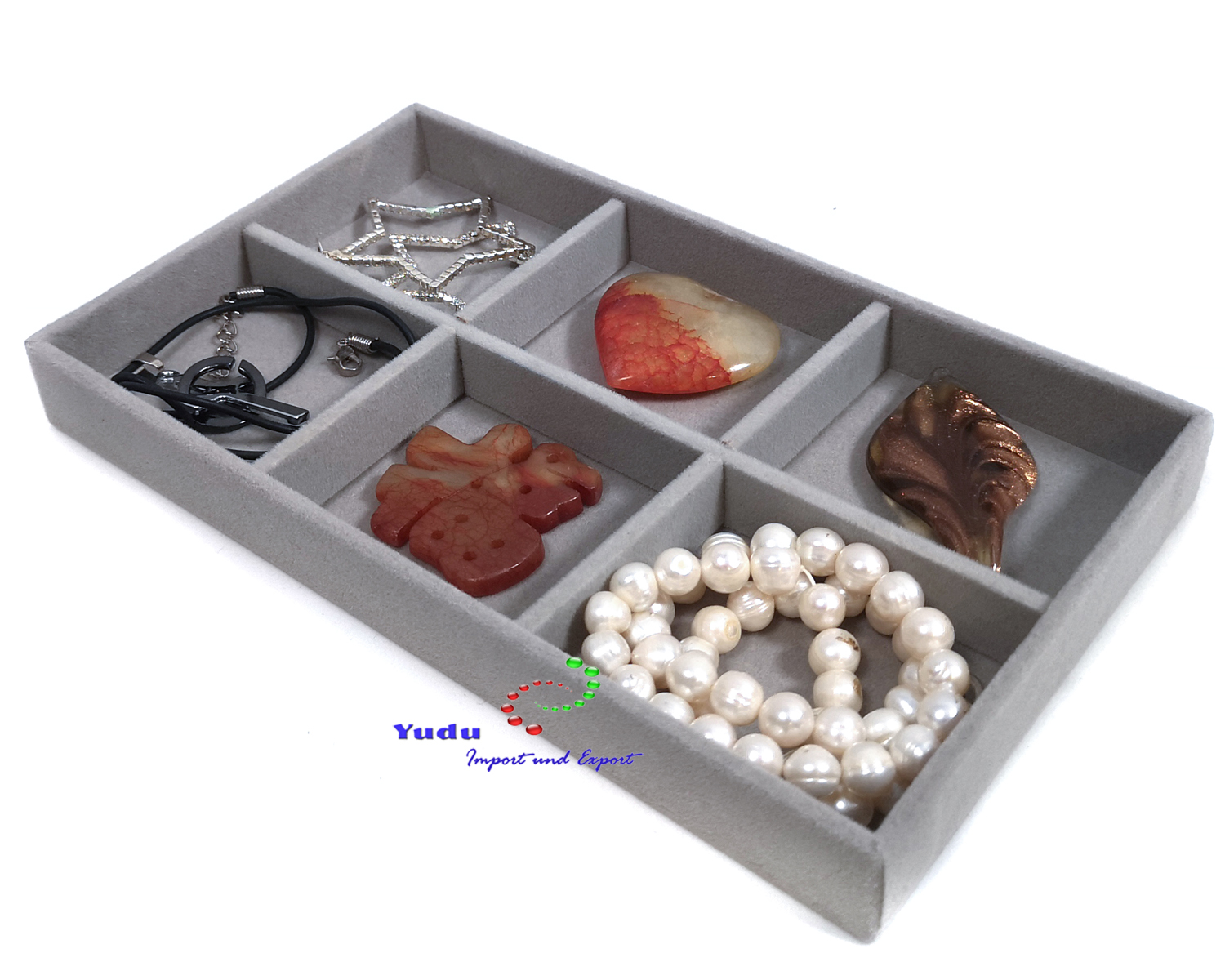 - Innen und Außen ist das Schmucktablett mit grauen Samtüberzug bezogen, um Ihren Schmuck vor Kratzern und anderen Schäden zuschützen